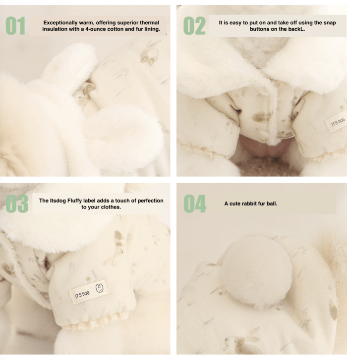 Designed with exceptional thermal insulation, featuring a 4-ounce cotton and fur lining, and soft padding for ultimate comfort. The hem is gathered to block out the wind, while the fur collar keeps the neck warm and protected. Equipped with snap buttons at the back for easy wear.