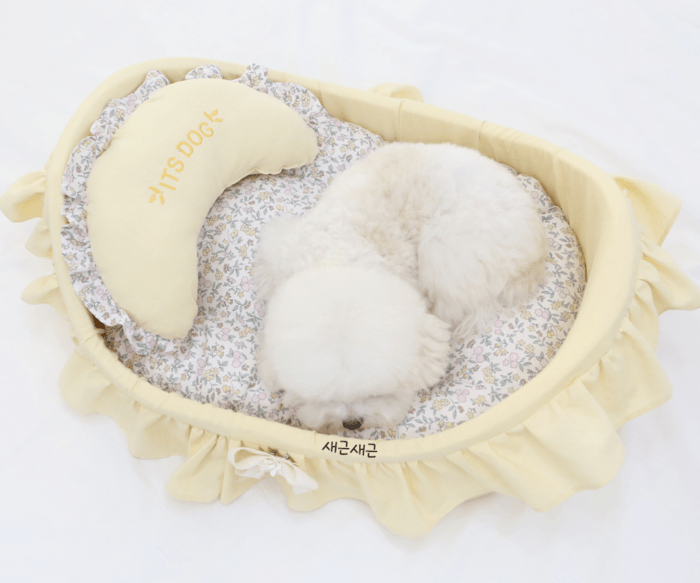 This dog bed adds a pop of colour to your home while offering a fabric that’s gentle on sensitive skin. Its cradle-like design ensures a cozy rest, and the removable cover makes washing very easy.