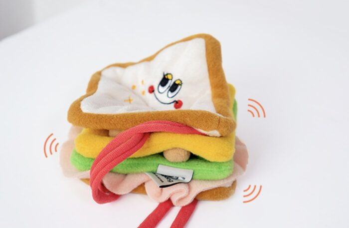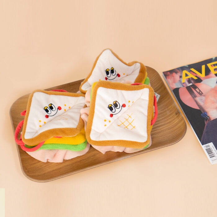 Meet our new dogs toy the toast bread that’s too cute to eat (but we won’t judge if you try)! With its squishy, fluffy goodness, this little loaf is perfect for tiny hands and curious paws. Your little one will love the adorable crunch when they squeeze it — it’s like a mini breakfast party in their mouth! Want to level up the fun? Hide some reward cupcakes inside and let your furry friend sniff their way to victory. It’s the ultimate sensory adventure!